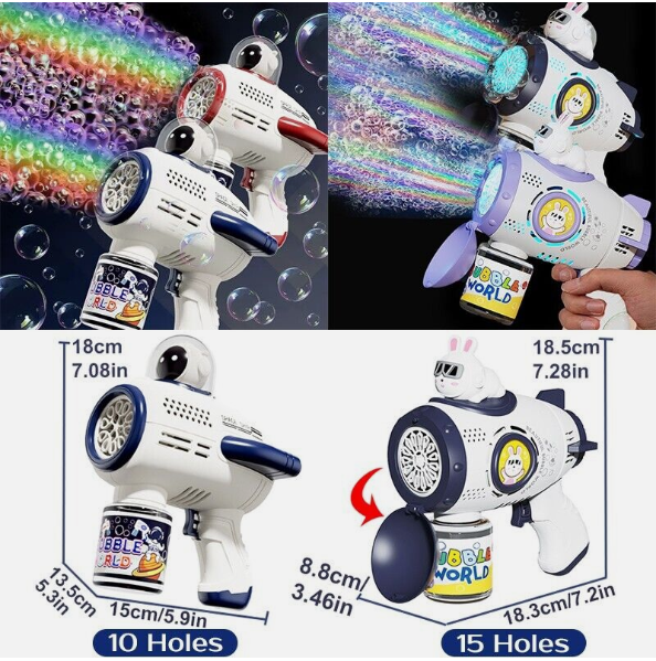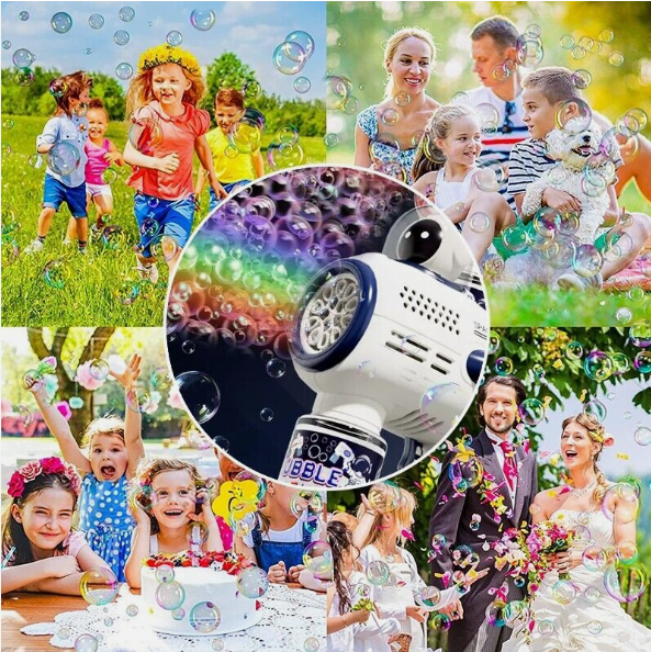 • Perfect Summer Toys for 3+ Kids- Bubble gun made of durable ABS material, sturdy and shatter-resistant, non-toxic which is perfect. Colorful bubbles will bring endless fun for kids.